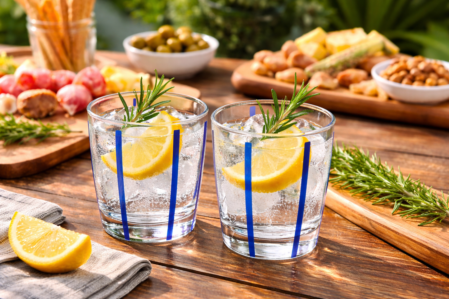 Kit 4 Copos Azura 300ml Vidro Listras Azul Mesa Posta